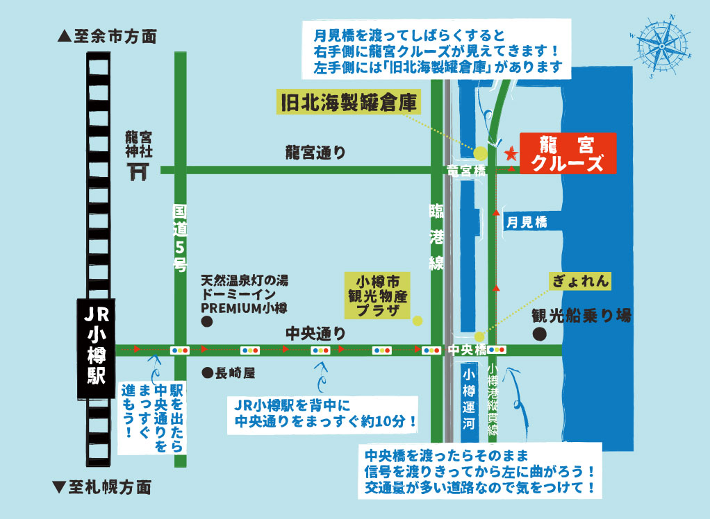 札幌からJRにて約45分。小樽駅を下車して車で5分!(徒歩で15分)!